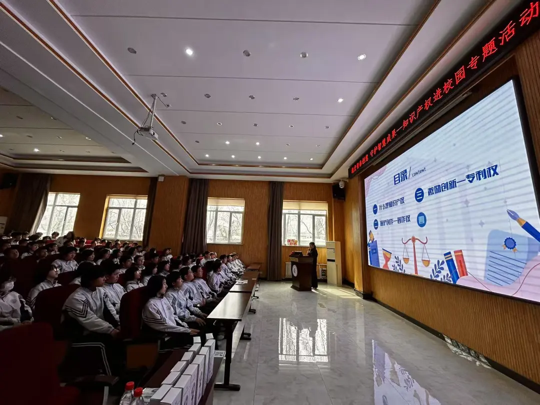 在第25个世界知识产权日来临之际,东北大学知识产权信息服务中心组织团队赴沈阳市南昌中学长白校区,面向七年级学生开展"激发青春创意,守护智慧成果"主题宣传活动。此次活动通过专题讲座、互动问答等形式,向青少年普及知识产权保护知识,取得良好成效。
