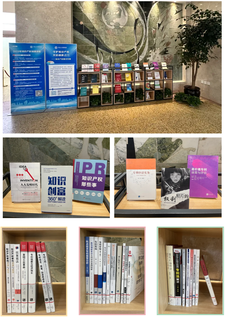 本次书展设在南湖校区图书馆二楼大厅,展出图书的内容涵盖知识产权前沿热点、知识产权保护、知识产权侵权案例分析、专利申请、专利审查以及专利运营等,欢迎广大师生前来借阅,共同开启知识产权知识的探索之旅。