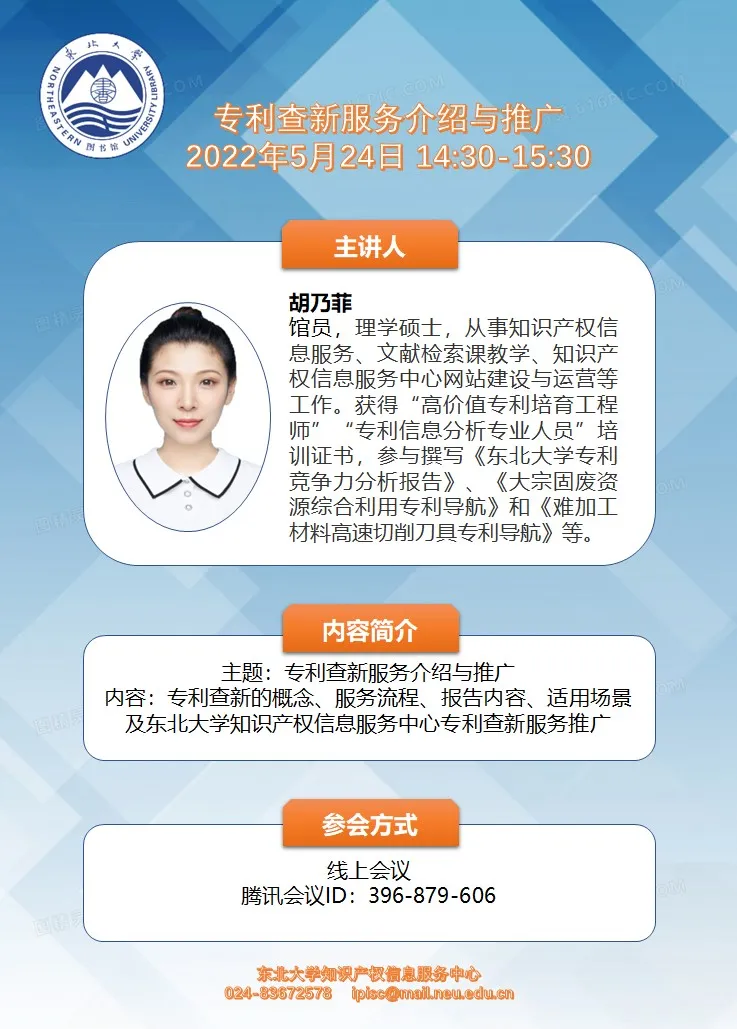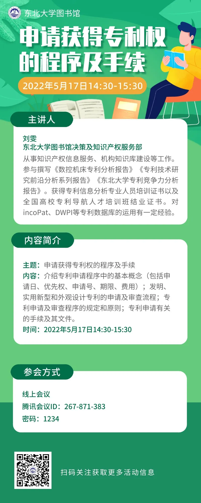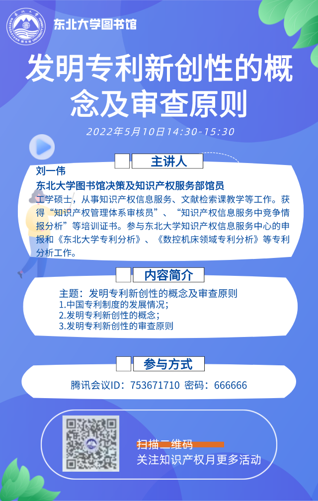 五月知识产权信息服务中心还将继续开展三场知识产权系列培训讲座,期待广大师生积极参与本次活动~