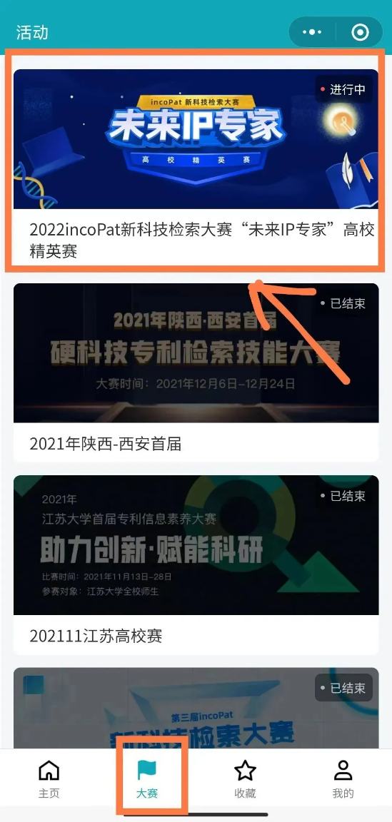 选手通过专利大王小程序报名,并可参加主办方提供的3次直播培训。请注意,incoPat大赛专用账号将在报名后通过短信形式发放,无需在incoPat官网首页申请,请各位参赛选手注意查收短信。如未收到报名成功短信,请添加incoPat小助理微信咨询(微信号:incoPat)。培训时间: