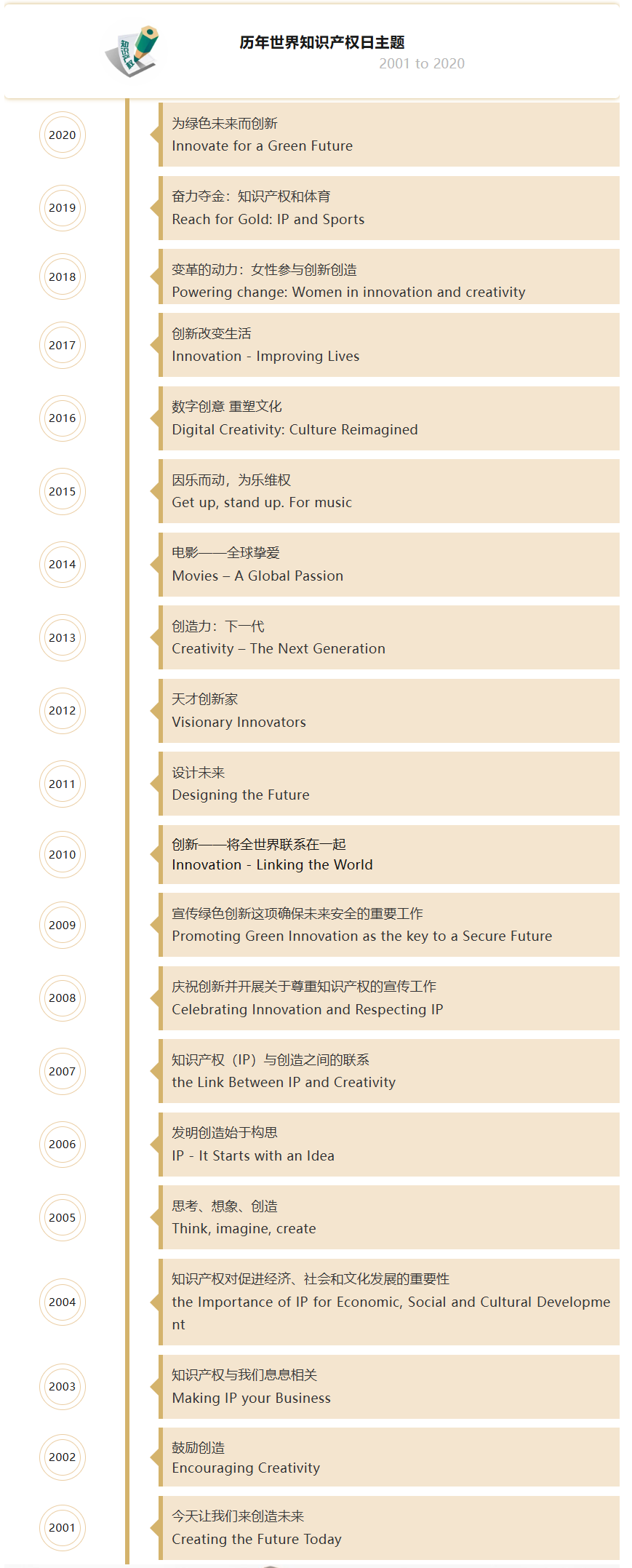 世界知识产权日的由来世界知识产权日(World Intellectual Property Day)由世界知识产权组织于2001年4月26日设立,并决定从2001年起将每年的4月26日定为“世界知识产权日”,旨在促进各界树立尊重知识、崇尚科学,保护知识产权的意识,营造鼓励知识创新和保护知识产权的法律环境。