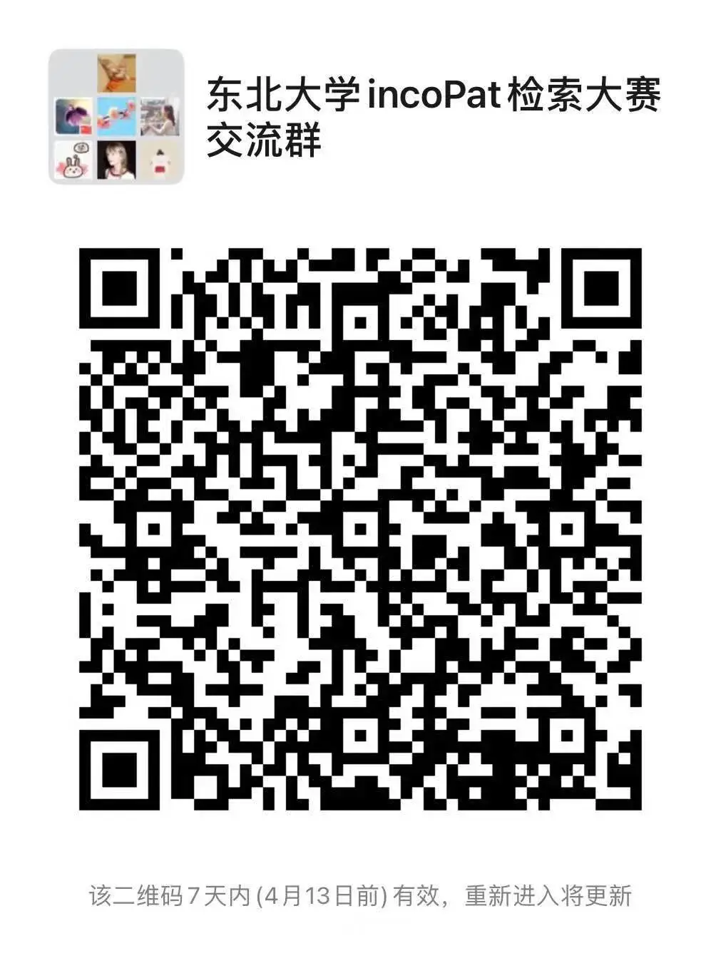本届大赛赛事咨询及交流,请扫码加入东北大学incoPat检索大赛交流群。